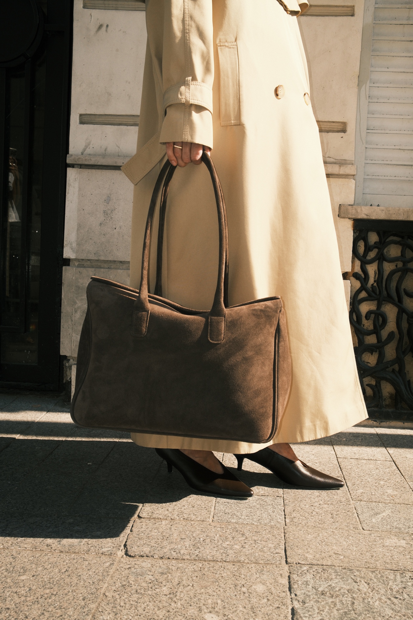К чему сложности, если каждой нужен просто удобный, мягкий и вместительный тоут, отлично сохраняющий форму? Именно такой мы сделали в коллекции Summer’24 вручную из натуральной замши. Никаких лишних деталей — вы можете добавить их сами по своему усмотрению, менять в зависимости от настроения или сохранить минималистичный вид сумки.