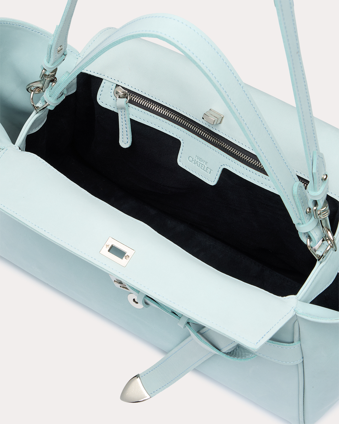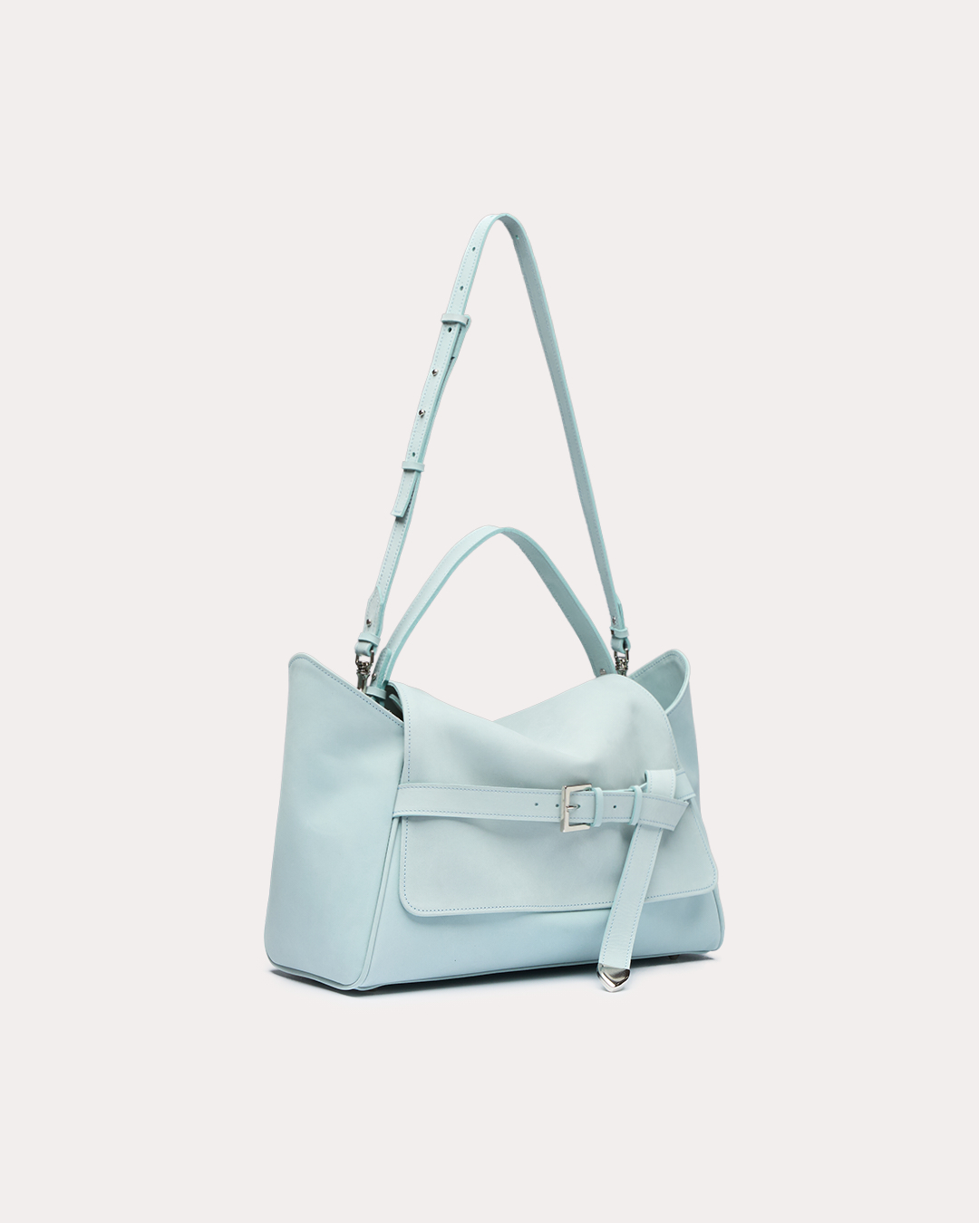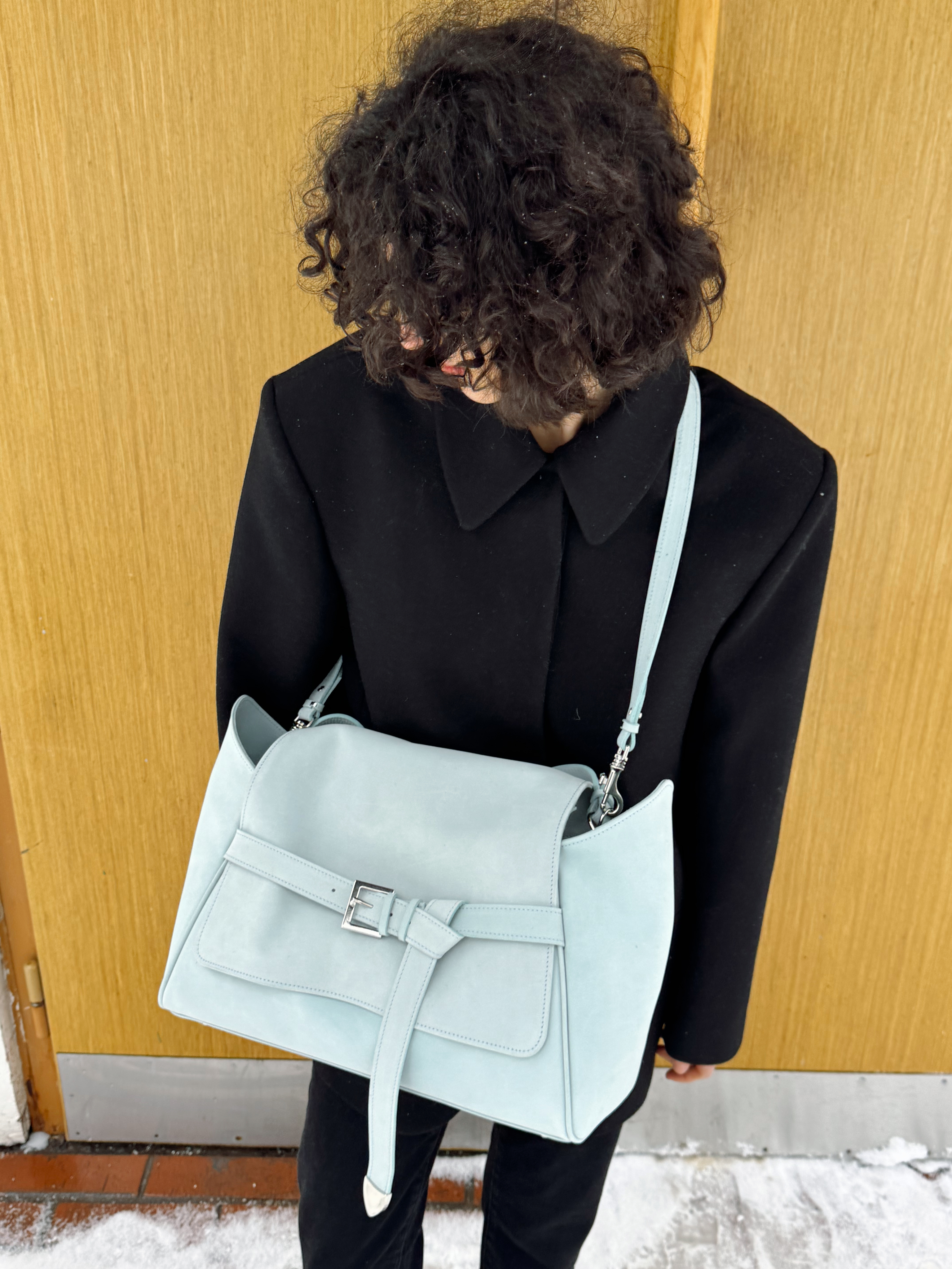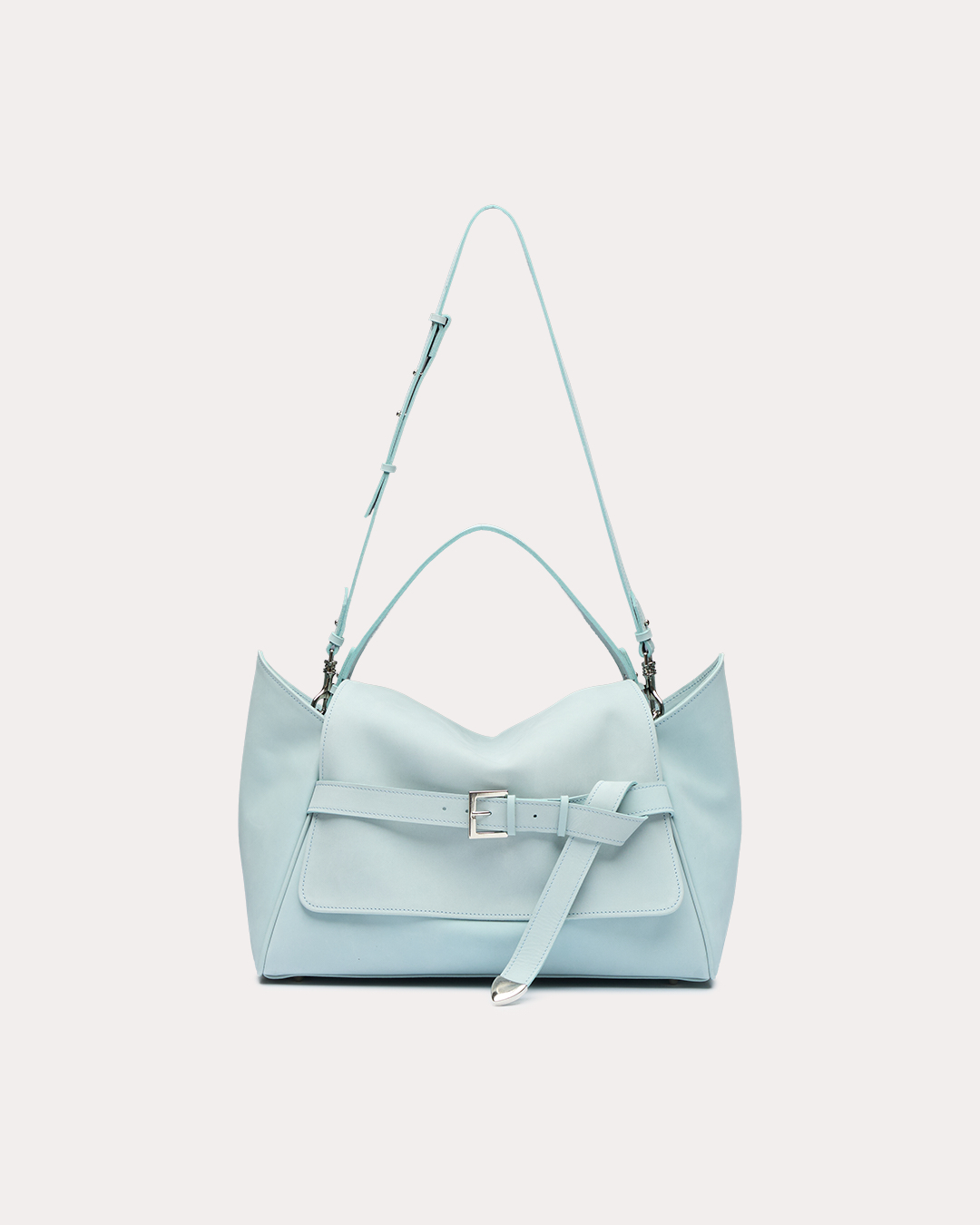 Аккуратный тонкий ремень регулируется по длине. В просторном внутреннем отделении предусмотрен карман, а закрывается сумка с помощью магнитной кнопки. В новой версии мы укрепили ручку для удобной носки сумки в любом положении. В качестве акцента мягкую форму обрамляет застёжка с серебряной фурнитурой, имитирующая ремень, а слегка винтажный эффект кожи добавит стиля в любой образ.