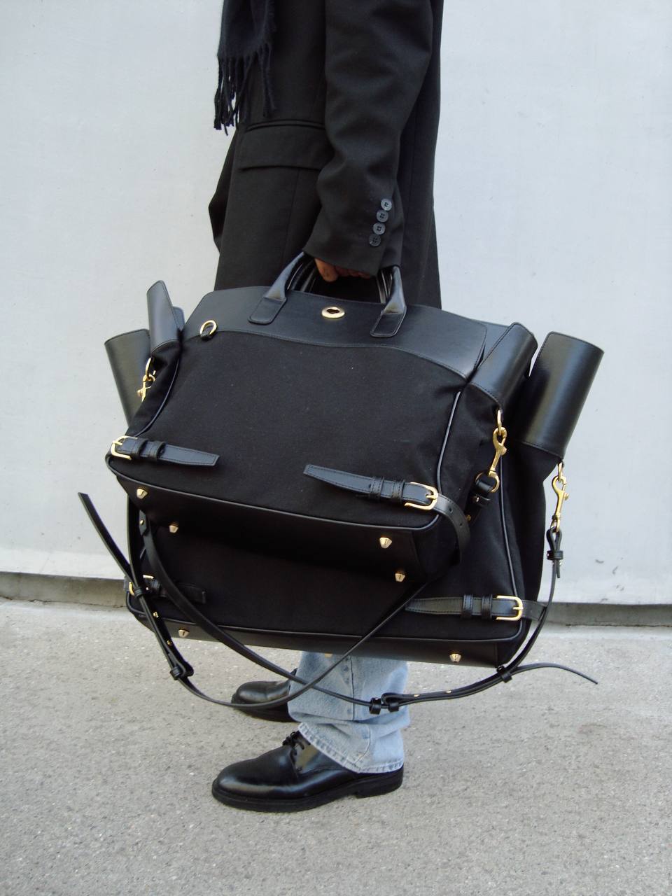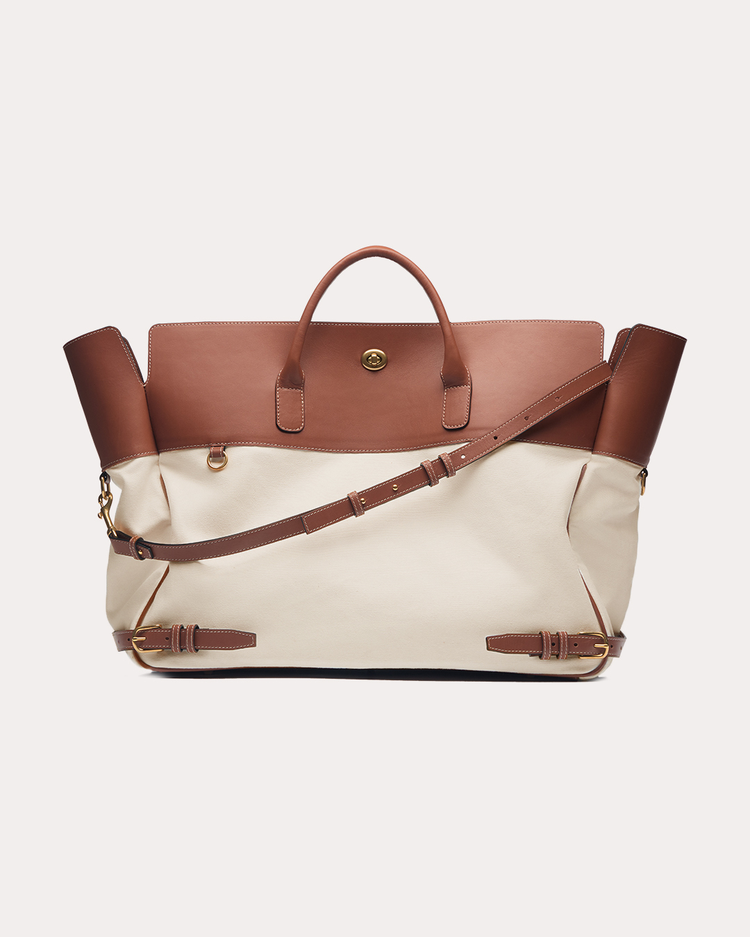 Ремни у основания сумки и фурнитура из состаренной латуни добавляют строгости и позволяют адаптировать её и в городских аутфитах. А то, что кроме ноутбука в неё поместилась ещё и форма для тенниса или каблуки на ужин, будете знать только вы.