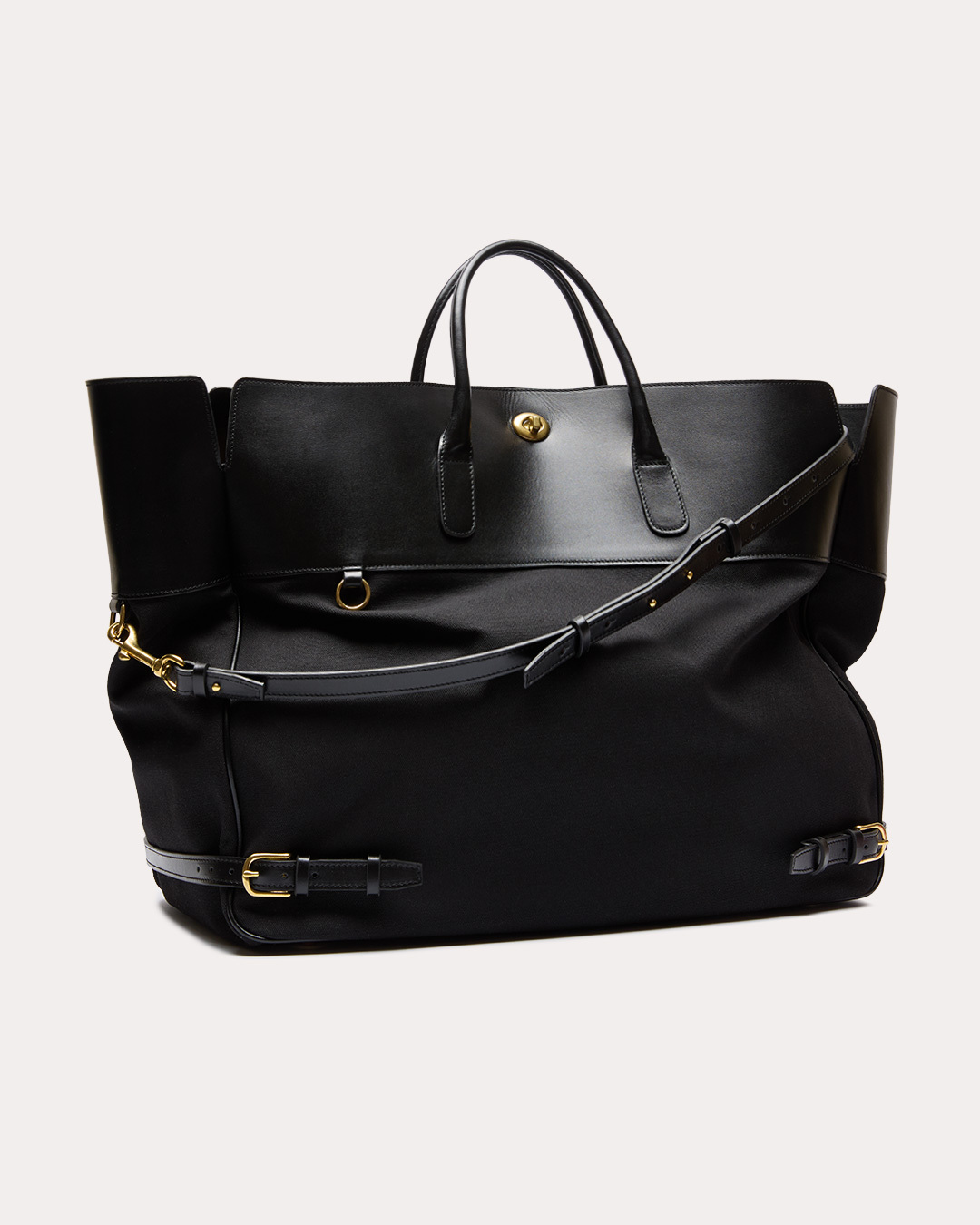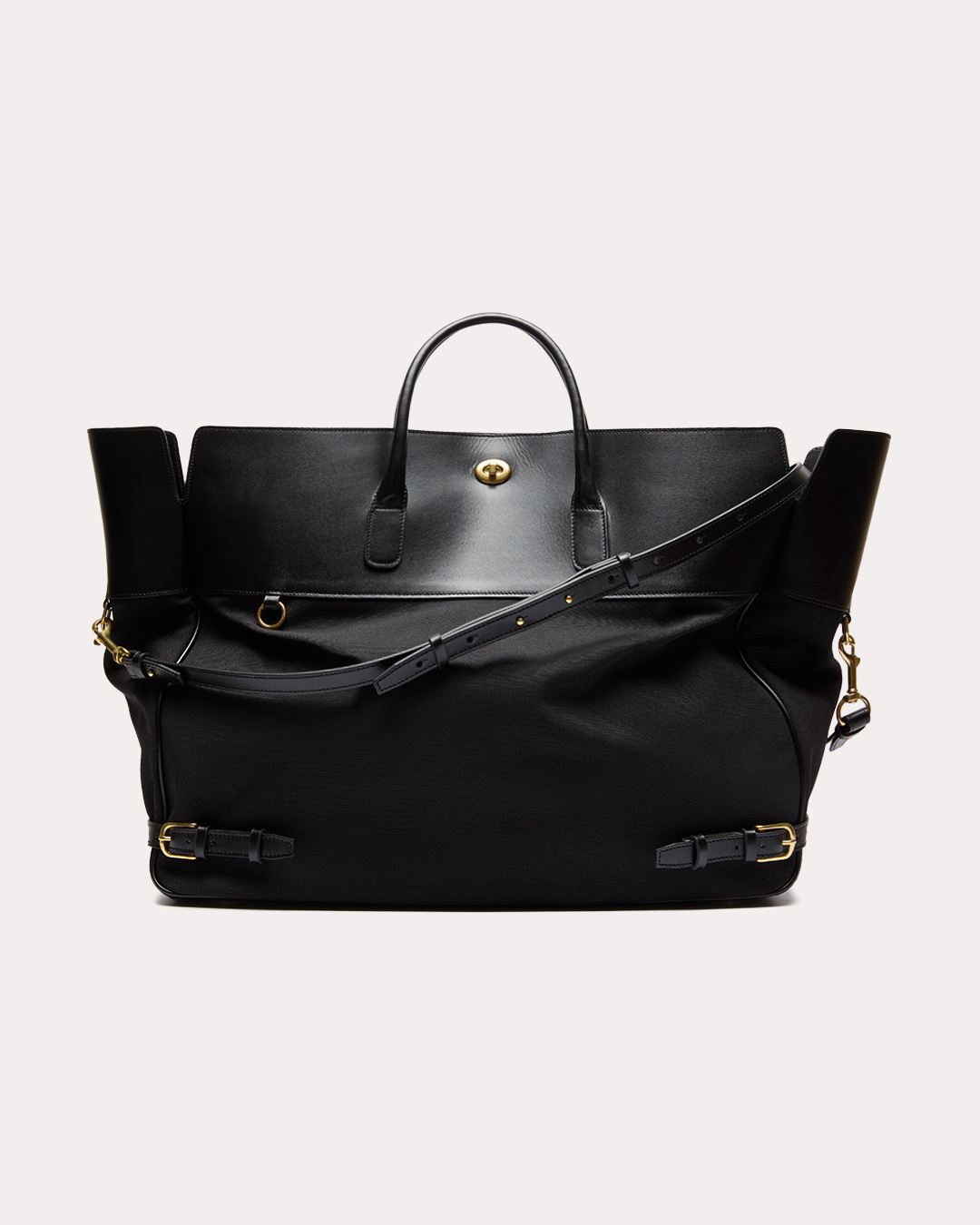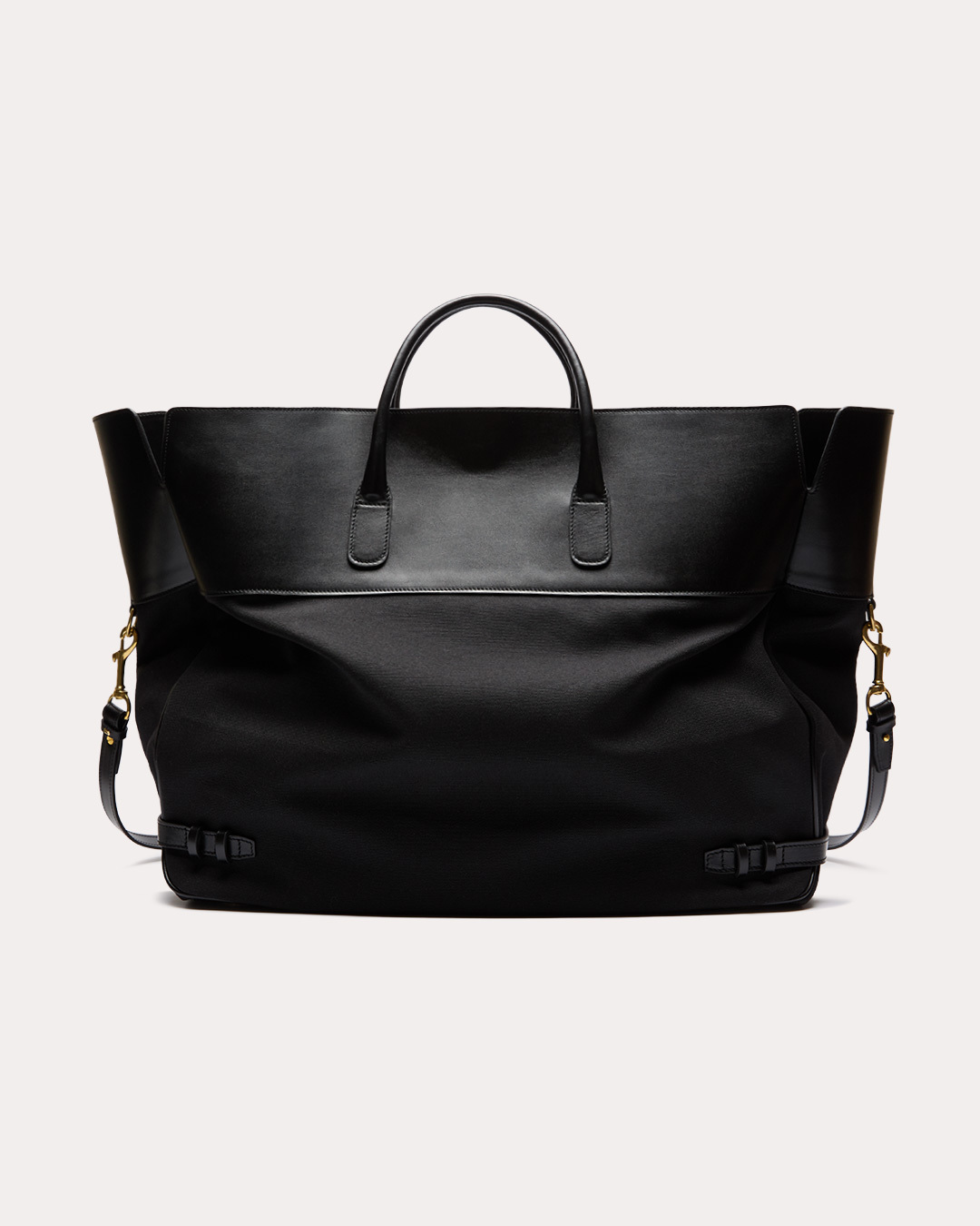 Сумка, с которой можно уехать на спорт или улететь в отпуск — вместительная, отлично держащая форму и всё, что внутри. Ремни у основания сумки и фурнитура из состаренной латуни добавляют строгости и позволяют адаптировать её и в городских аутфитах. А то, что кроме ноутбука в неё поместилась ещё и форма для тенниса или каблуки на ужин, будете знать только вы.