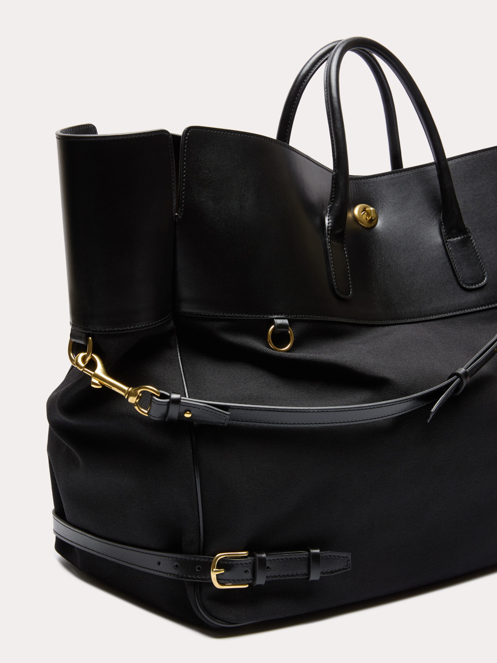 Основная часть из канваса делает сумку более лёгкой — идеально для ручной клади. Ручки средней длины и плечевой ремень дают возможность носить сумку любым способом. При этом универсальное цветовое сочетание всегда можно разбавить индивидуальными элементами: к кольцу на внешней стороне сумки вы можете легко закрепить актуальные аксессуары, чехол для очков или другие элементы.